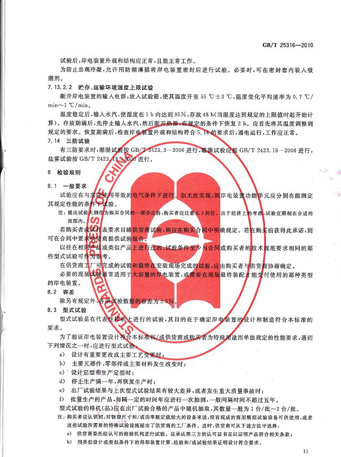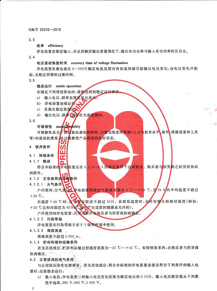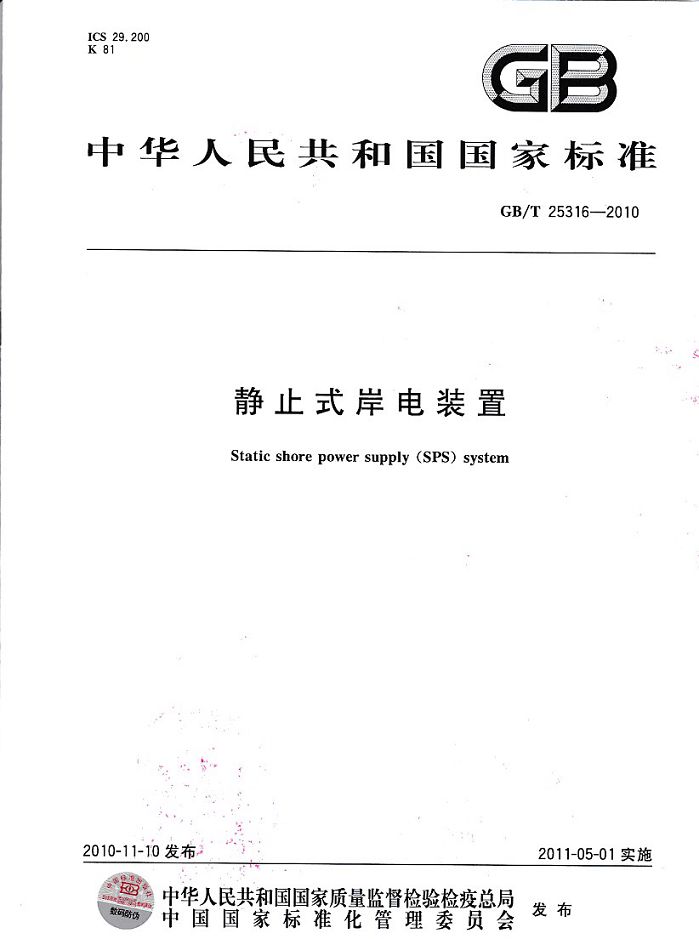 創(chuàng)統(tǒng)負(fù)責(zé)起草制訂GB/T25316《靜止式岸電裝置》